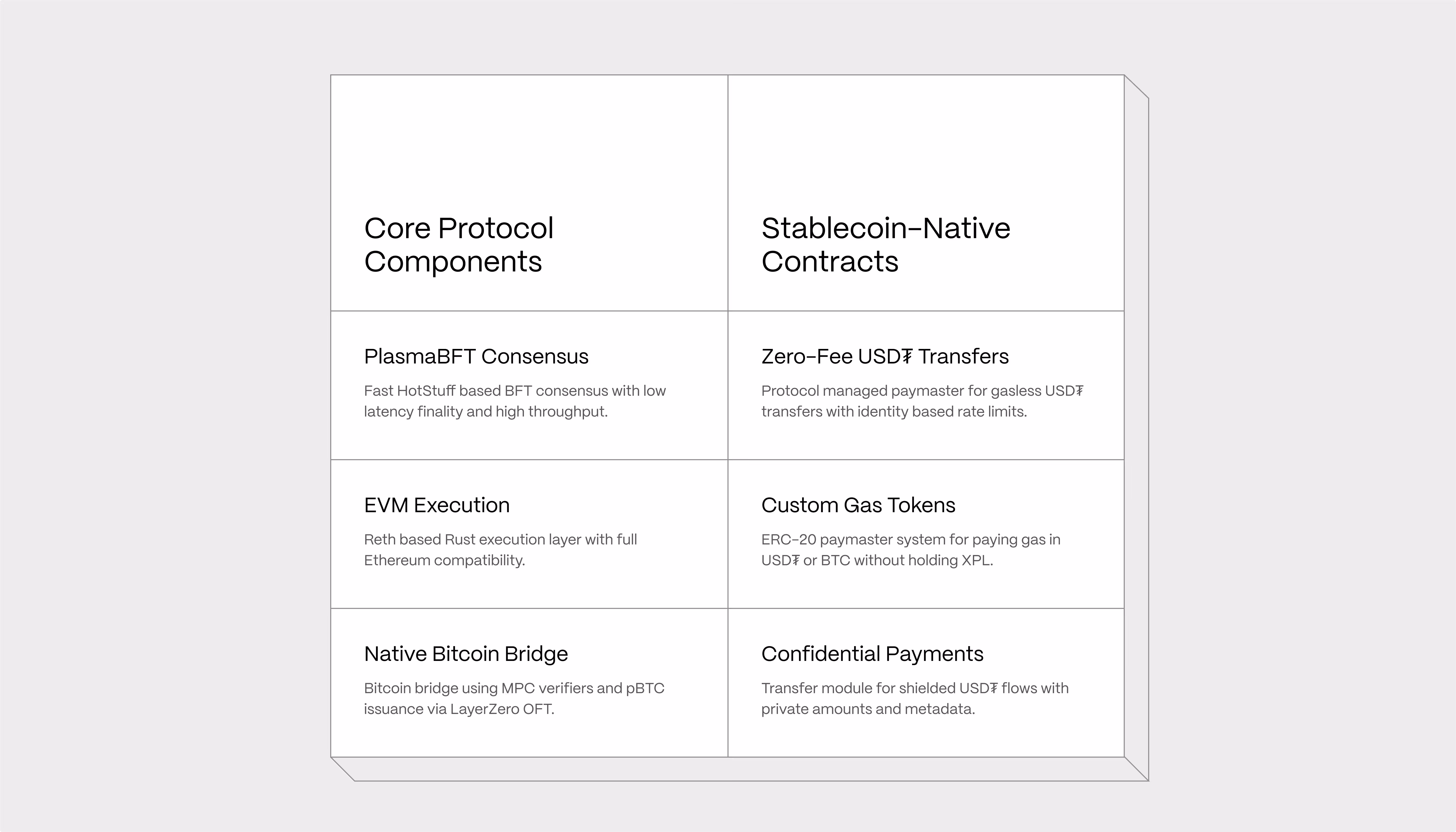 Plasma’s execution environment is fully EVM compatible and powered by Reth, a high-performance Rust client.