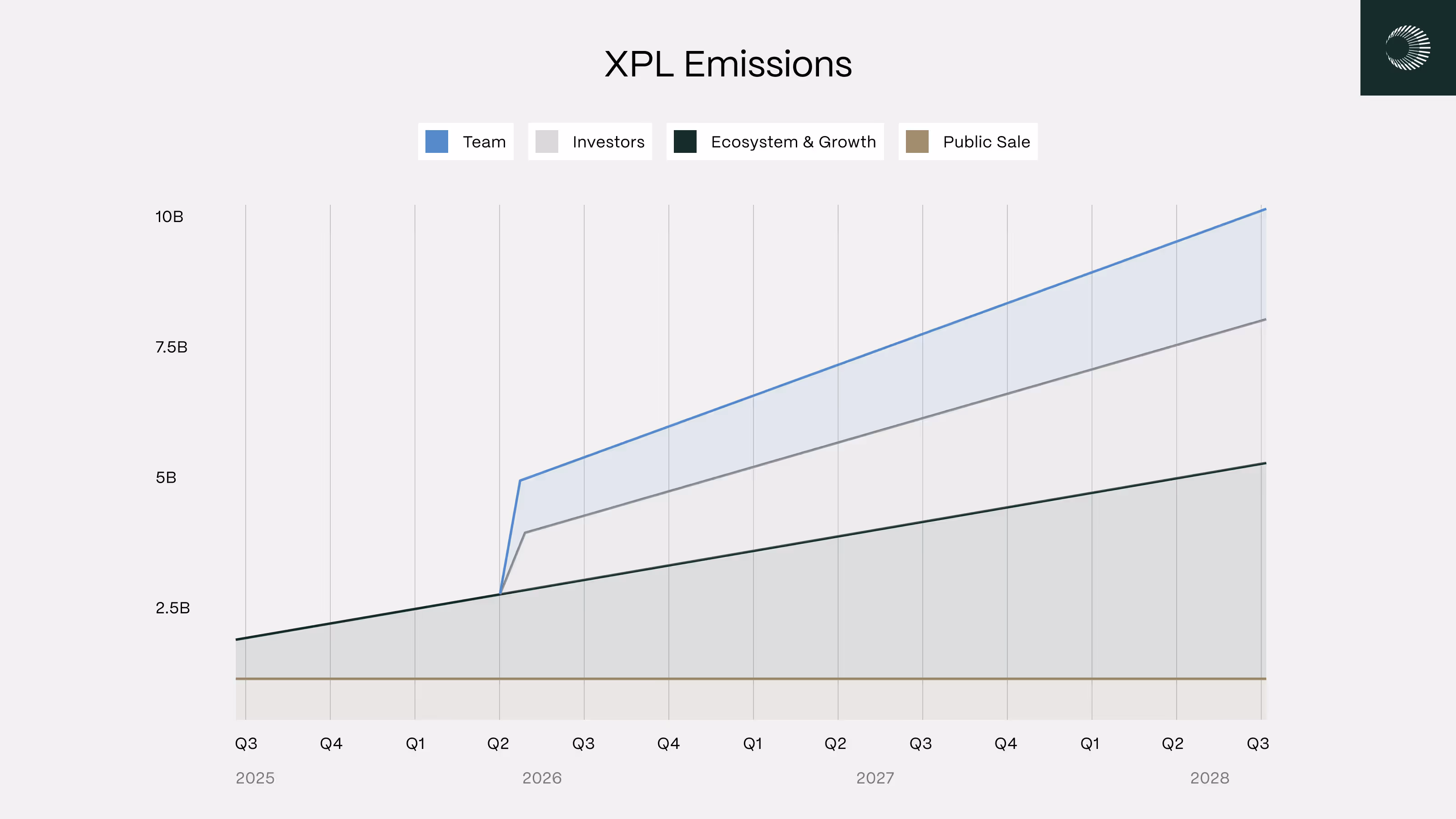 Eski finansal sistemleri yeniden yazmak endüstri lideri yetenek gerektirir ve bu yetenekleri çekmek uzun vadeli teşvik uyumunu gerektirir. Bu nedenle, mevcut ve gelecekteki hizmet sağlayıcılarını teşvik etmek için XPL tedarikinin %25'ini (2.500.000.000 XPL) tahsis ettik. Başlangıç tarihlerine bağlı hak verme programlarına ek olarak, takıma tahsis edilen XPL'nin kilidi aşağıdaki gibi açılır: